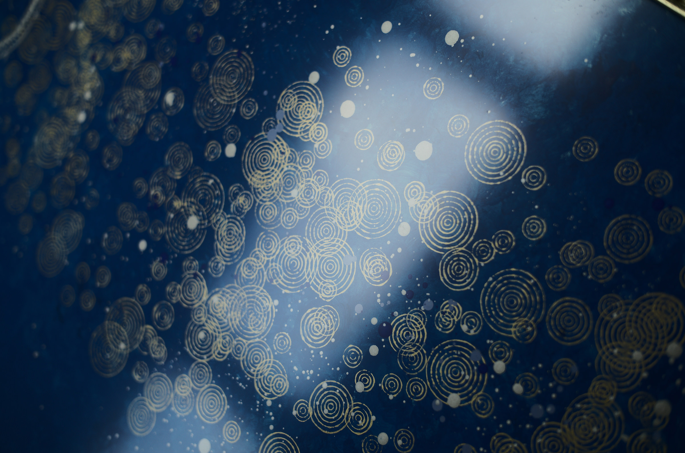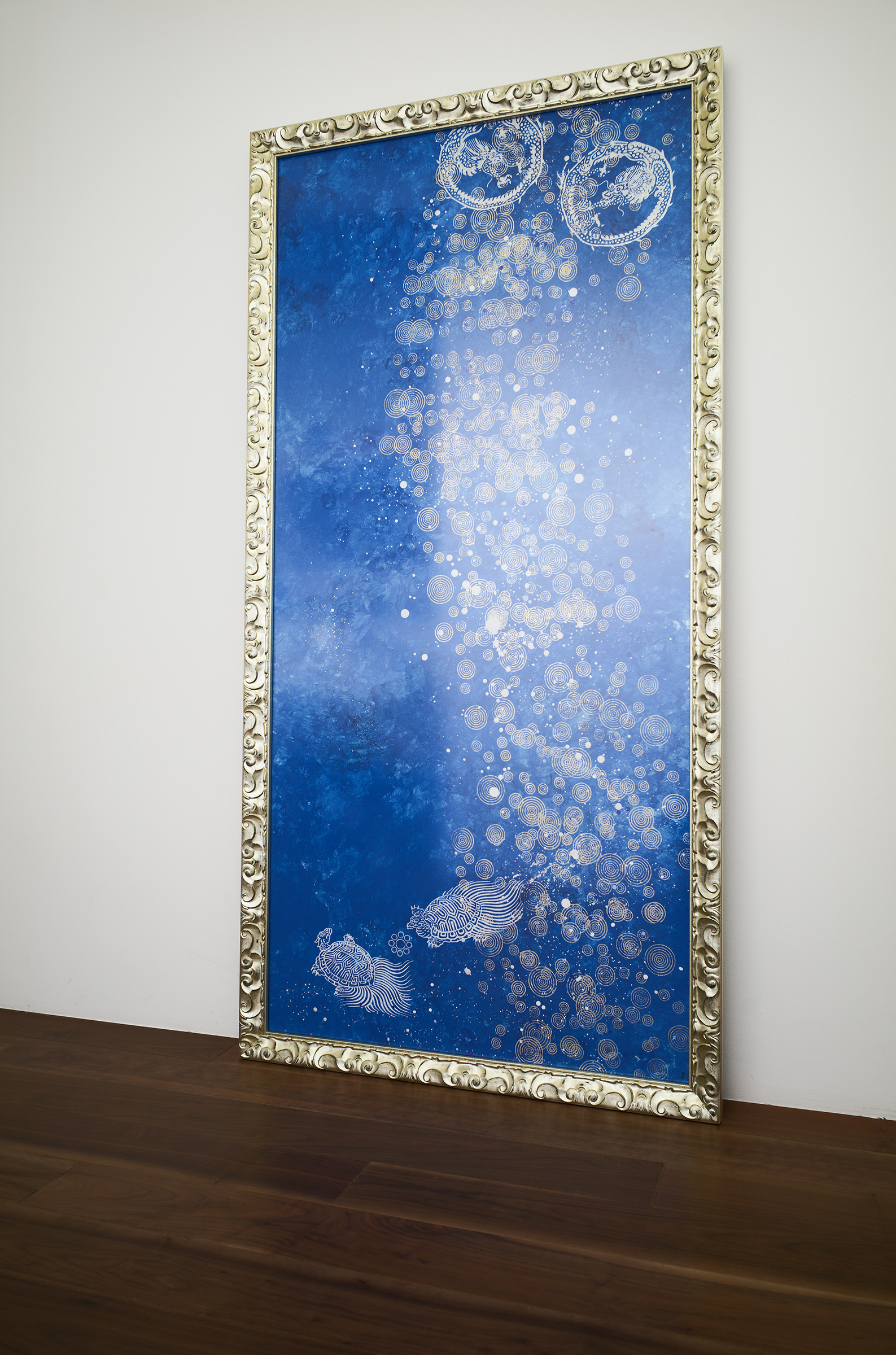 千田長右衛門 BLUE ART About Art Works Order ミズハ 「ミズハ」とは、水のカミさまと共に在ることを願い生まれた作品。波紋のエネルギーをスパークさせる中、唐紙は八百万の神々と共に手がけるという千田長右衛門の思想に基づいたもの。この唐紙には、やがて龍になる神さまの使いである亀が人々の祈りを連れて、天空へと舞い上がり龍となって願いを叶え、世界平和を見守るというメッセージが込められている。 2015年10月唐紙師 千田長右衛門 ミズハ Art Works Composition季風の道昇龍SAGA瑞雲に鶴亀星に願いをミズハムジナモ輪葉+細渦など More