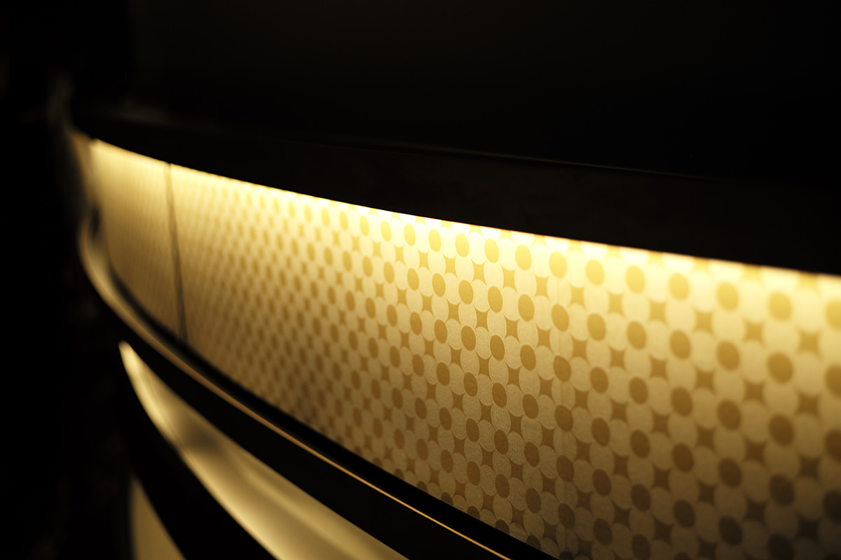 いつかオランジュリー美術館にあるクロード・モネの「睡蓮」のようなシチュエーションで唐紙を披露したいと願いがあった。そのシチュエーションとは、まぁるい曲面に唐紙の世界を表現すること。