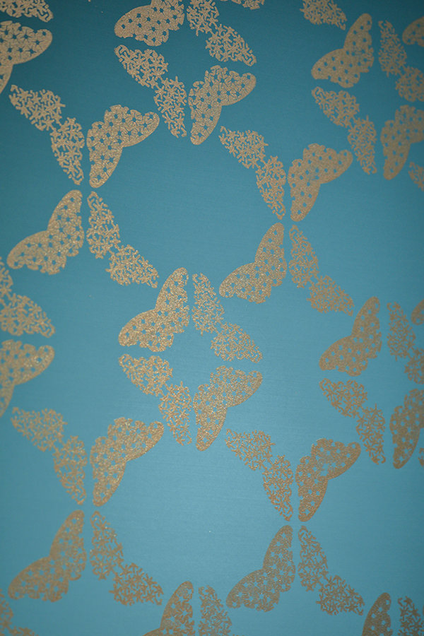 藤袴自体がアサギマダラを形どり渾然一体となった文様を、ネガとポジで表現しました。そのモチーフが天地左右につながってゆく七宝で繋いだ縁繋ぎ文様です。奇跡の飛翔を遂げるアサギマダラの邪気払い、長寿、復活や再生の力と、余白を組み合わせたもの。余白は、空っぽで何も無いのではく、人は思い思いにその余白に思いをこめ、宿すことができると考えた。