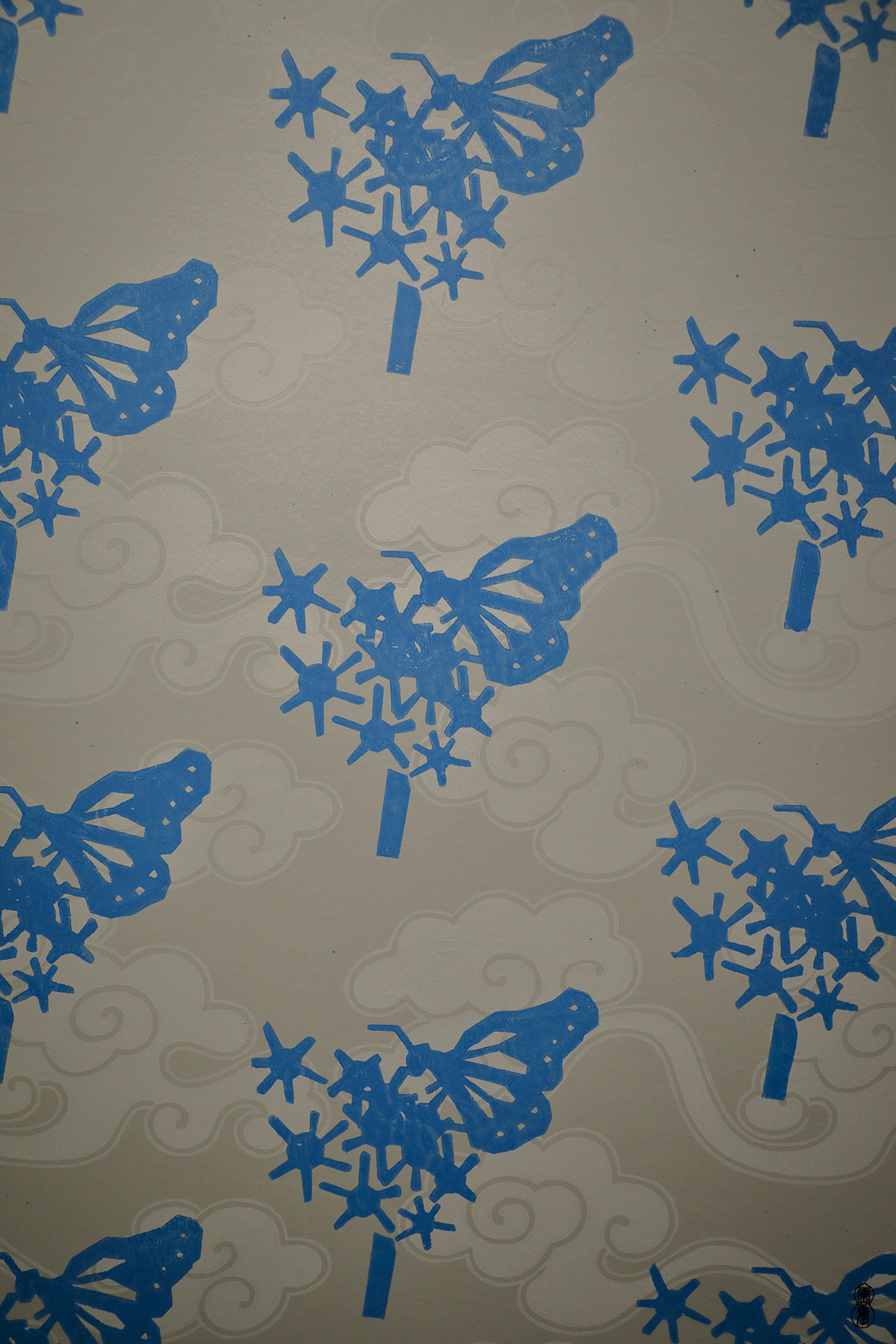 中でも、点描とたらし込みを東西文化融合させ自らの指で染めていく独自の技法「しふく刷り」などから生まれる神秘的で深淵な青い唐紙作品は、八百万の神や精霊と共に手がけた詩情が宿るスピリチュアルな「トトブルー」として愛され、青の芸術、青の作家とも呼ばれています。